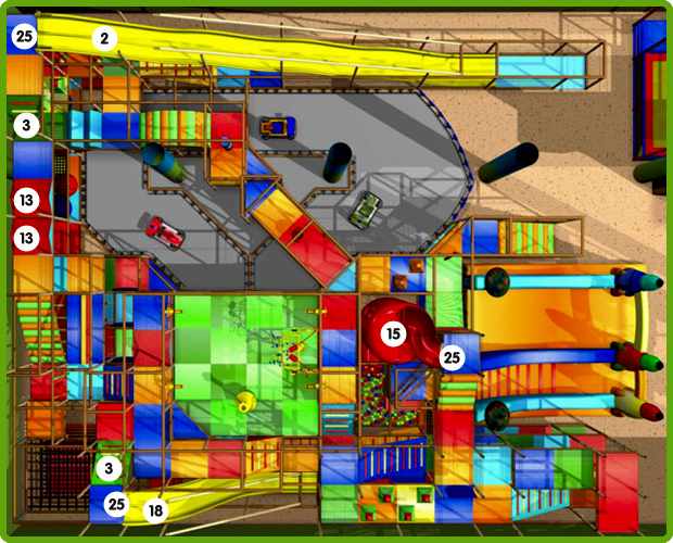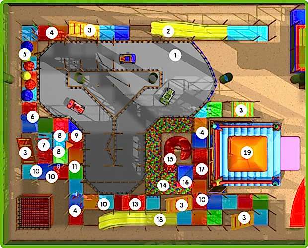 1 Go-Kart 2 Dalgalı Kaydırak 3 Eğimli Engel 4 Yılanlar